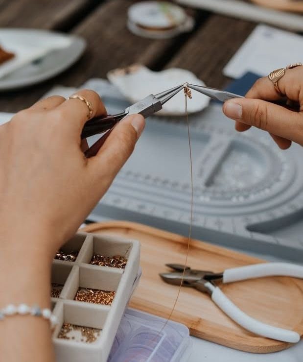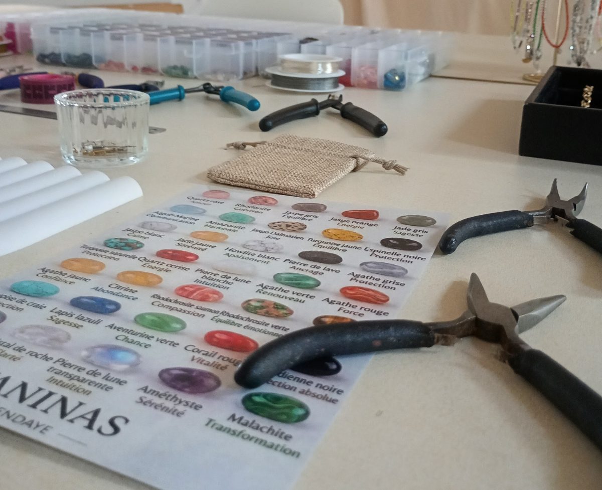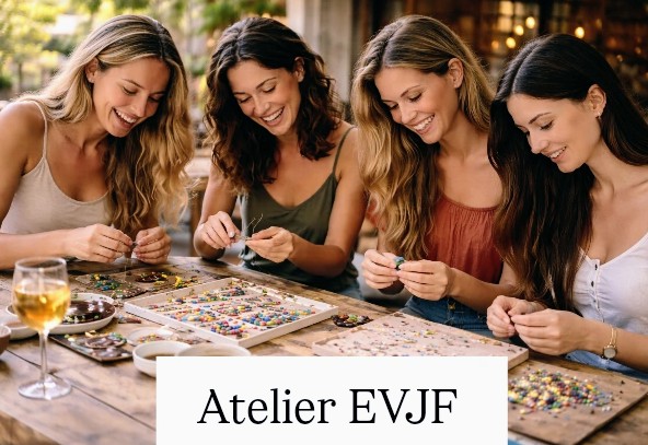 ATELIER EVJF Bachelorette party Célébrez un enterrement de vie de jeune fille avec une activité créative et originale. Lors de cet atelier, la future mariée et ses amies créeront chacune leur propre bijou (bracelet, collier ou boucles d'oreilles) à partir de chaînes et pierres naturelles. Je vous accompagne pas à pas pour réaliser une pièce unique à emporter en souvenir de cette journée spéciale. Un moment convivial pour rire, créer et partager entre amies. Tout le matériel est fourni. Les bijoux sont réalisés avec des pierres naturelles soigneusement sélectionnées et des apprêts en acier inoxydable PVD, un matériau durable. Aucune expérience n'est nécessaire. Prix par personne.Durée: 1h30-2h